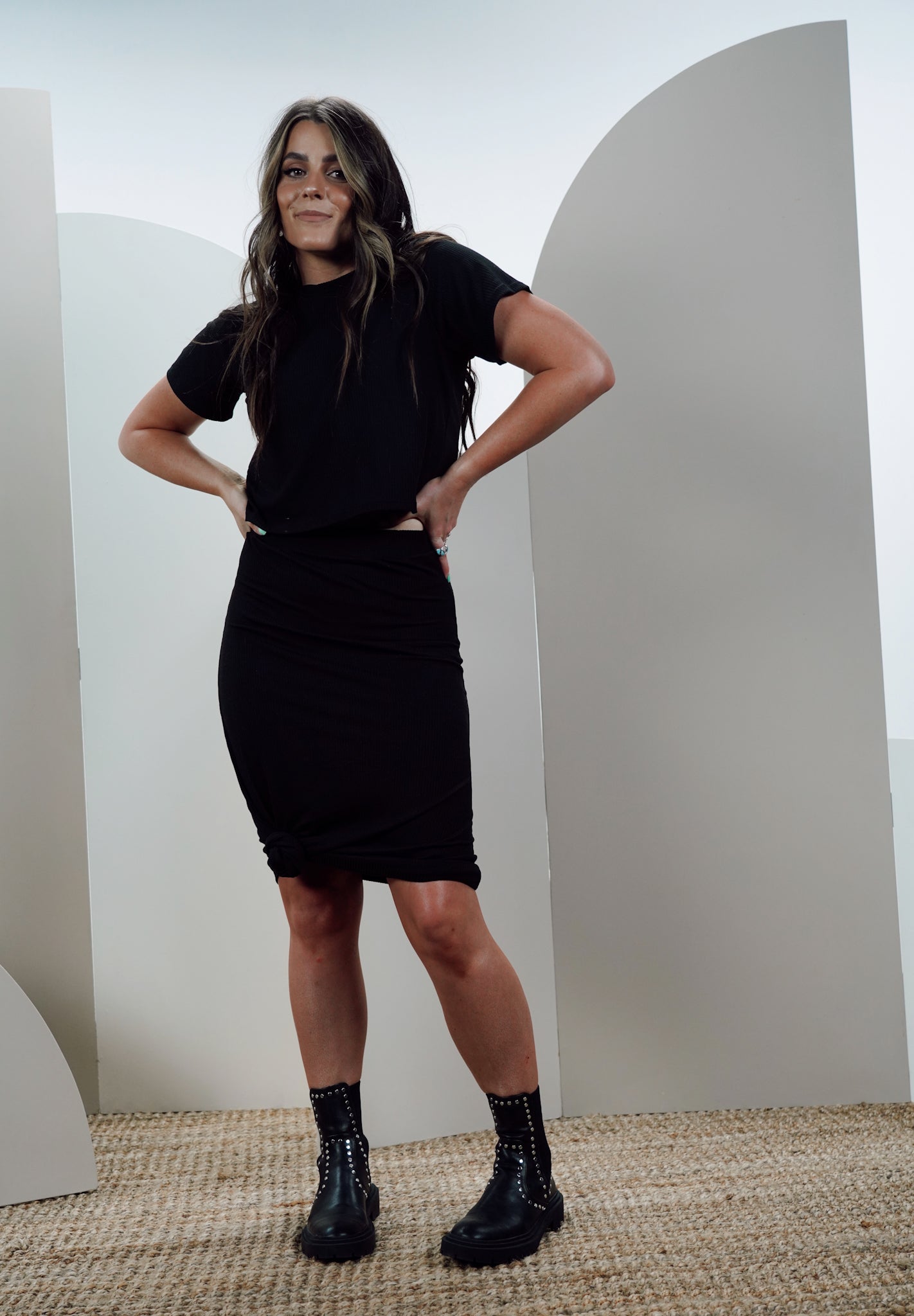 Another day, another matching set! This time we stepped it up and found the cutest shirt/skirt combo! The best stretchy and buttery material you'll ever wear! This set has incredible stretch & overall is so freaking comfortable! Also available in taupe.